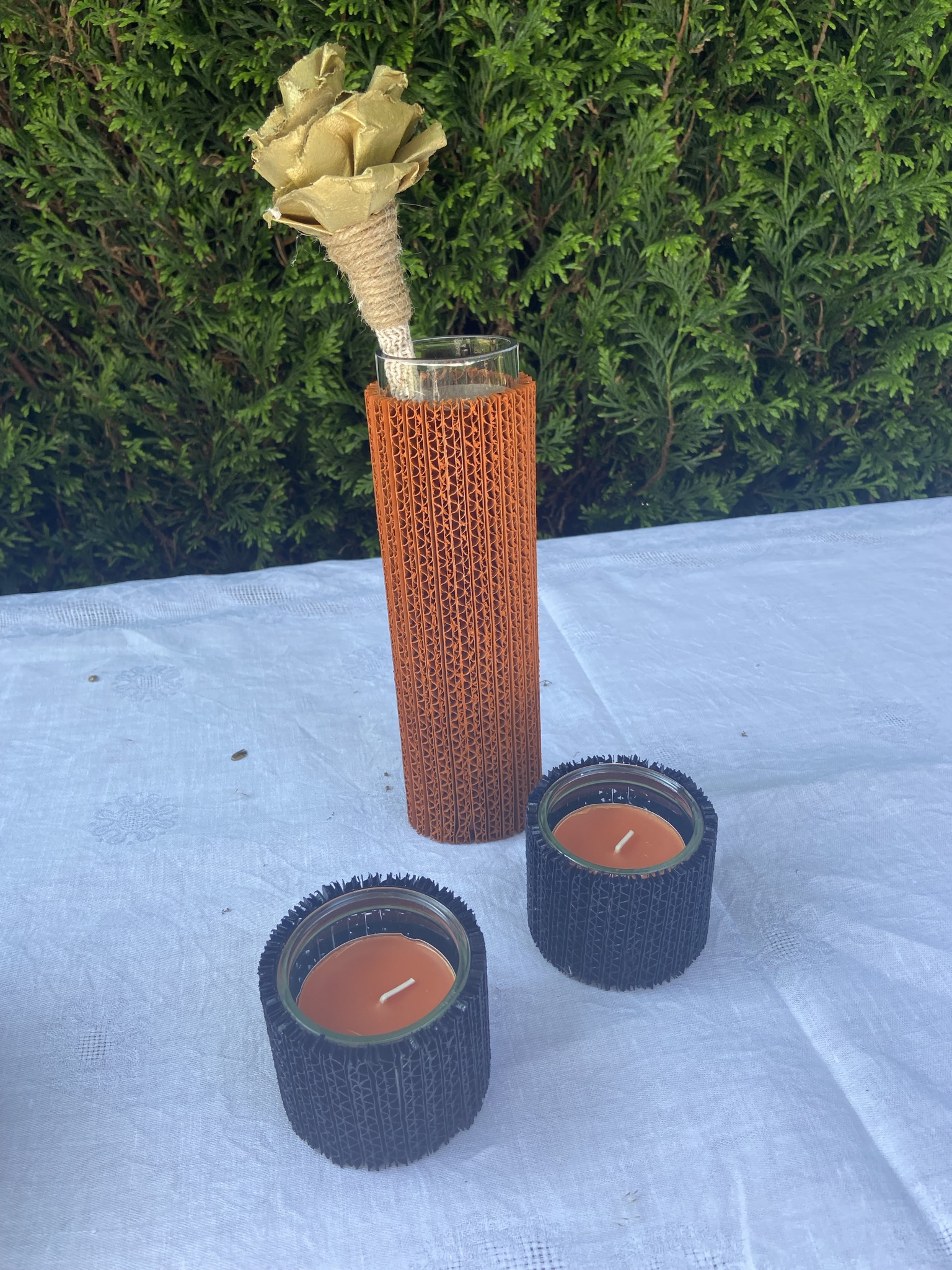 Vase soliflore, pour fleurs naturelles ou séchées, Vase en découpe de carton sur vase recyclé. Dimension environ 6cm*30cm